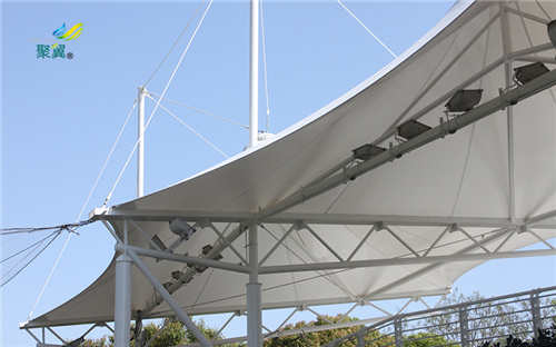 膜結構工程的膜材加工完畢后,在包裝前膜面應清潔干凈,包裝時不得污染和損壞,膜材打包時,宜包上緩沖材料以防止對膜體造成折彎、壓壞等損傷,聚四氟乙烯涂層玻璃纖維基材的膜材料應采用蕊棍,以卷的方式打包,蕊棍的直徑應大于等于100mm。