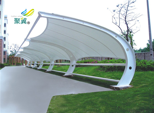 膜結構車棚在施工前期要對現象進行勘測以及現場的車位布局進行測量,設計出完整