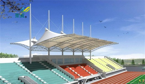 花色眾多好保養,它耐酸堿的侵蝕,下雨雨水洗滌擦干即可。更需注意的是,膜材的材質性能不同,功能也相對不同。一般建議,北方應選擇抗拉抗壓強度相對大的,在環境中的相適應。另外,膜結構看臺結構也是根據膜材的抗拉性能的另一種選擇,它的抗拉強度決定了它活潑的設計感,甚能為空間增加變化。