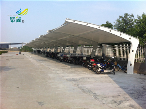 膜結(jié)構(gòu)車棚大家隨處可見(jiàn),甚至家門口就是這種形式的停車棚,可以看出來(lái)和傳統(tǒng)的停車棚相比,美觀了許多,