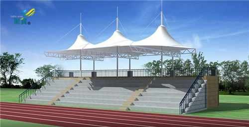膜結構看臺又叫張拉膜結構,是以建筑織物,即膜材料為張拉主體,與支撐構件或拉索共同組成的結構體系。它以其新穎獨特的建筑造型,良好的受力特點,成為大跨度空間結構的主要形式之一。膜結構看臺是一種全新的建筑結構形式,它集建筑學、結構力學、精細化工與材料科學、計算機技術等為一體,具有很高技術含量。其曲面可以隨著建筑師的設計需要任意變化,結合整體環境,建造出標志性的形象工程。