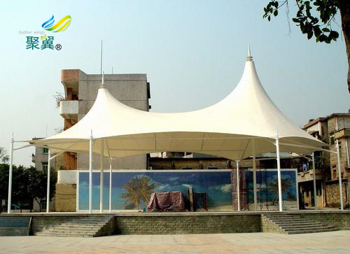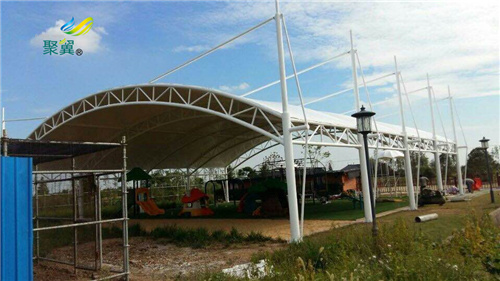 四、膜結(jié)構(gòu)安裝過程中不應(yīng)發(fā)生雨水積存現(xiàn)象。同時(shí)應(yīng)根據(jù)降雨的程度決定工程的中止和繼續(xù)。