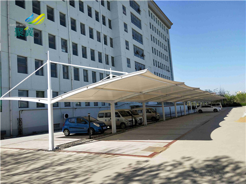 膜結構車棚是以建筑織物,即膜材料為張拉主體,與支撐構件或拉索共同組成的結構體系,它以其新穎獨特的建筑造型,良好的受力特點——成為大跨度空間結構的主要形式之一。膜材料是指聚酯纖維基布或PVDF、PVF、PTFE等不同的表面涂層,配以優質的PVC組成的具有穩定的形態,并可承受一定載荷的建筑紡織品。它的壽命因不同的表面涂層而異,一般可達成10-20年。