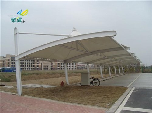 膜結構車棚膜結構一改傳統建筑材料而使用膜材,其重量只是傳統建筑的三十分之一。而且膜結構可以從根本上克服傳統結構在大跨度(無支撐)建筑上實現時所遇到的困難,可 創造巨大的無遮擋的可視空間。其造型自由輕巧、阻燃、制作簡易、安裝快捷、節能、易于、使用安全等優點,因而使它在世界各地受到廣泛應用。
