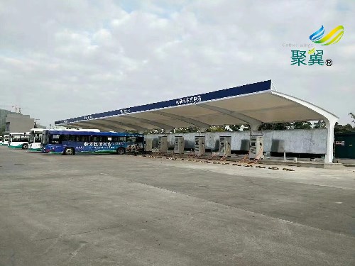 膜結(jié)構(gòu)就開始走下坡路。膜結(jié)構(gòu)充電樁車棚因?yàn)槟そY(jié)構(gòu)的張力很強(qiáng),在較大的距離內(nèi)都不需要鋼鐵的支撐。所以這就能節(jié)省很多材料。但是由于特氟龍膜的保溫效果不好,當(dāng)冬天燒暖氣時(shí),外面的風(fēng)會(huì)將里面的熱氣帶走,于是我們就研制了一種絕熱的內(nèi)襯,叫做透明隔熱層。膜結(jié)構(gòu)充電樁車棚將這個(gè)隔熱層置于布中,就能達(dá)到很好的保溫效果,同時(shí)還能抵制夏天室外的熱氣,冬暖夏涼。只要能將保溫工作做好,那么用來燒暖氣的燃料自然就減少了,這也就達(dá)到了節(jié)能的要求。所以現(xiàn)在完全是按照綠色建筑的標(biāo)準(zhǔn)去設(shè)計(jì)建筑。
