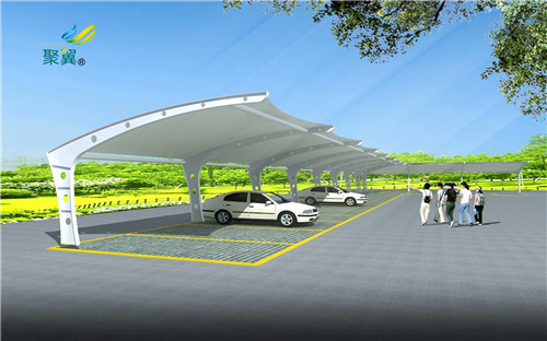 常見的膜結構停車棚一般采用鋼結構支撐。阻燃涂料是我國鋼結構常用的防護涂料。目前大多數類似的建筑都沒有涂防火涂料。還有一種穩定性較好的方法:結構處理,使膜表面靠近電纜下方,火災煙霧先面向膜表面,使電纜下方有額外的保護層,使鋼框架不受高溫的影響。