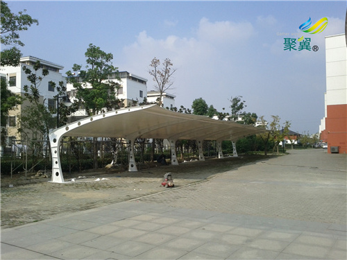 膜結構車棚的安裝包括膜體展開、連接固定和張拉成形三個部分。除了一般雨棚不可比擬的耐用、實用、遮風擋雨的功能外,膜結構雨棚更是一座雕塑,一件藝術品,給人和種美的視覺享受。膜結構車棚在安裝過程中應充分注意風速和風向,避免發生顫動現象。同時應根據降雨的程度決定工程的中止和繼續。