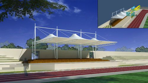 三、膜結構體育看臺在鍛煉身體的話、晚會節目等商業活動上,顯得更為莊重。尤其是校運會不斷幾日,學校膜結構體育看臺不但能給主持人和觀眾們出示一個舒服自然環境,還能使頒獎典禮顯得更為的靠譜。