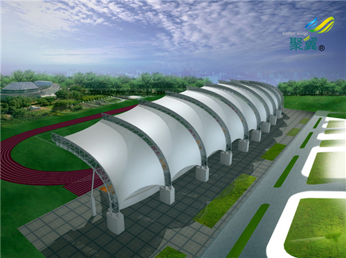 膜結(jié)構(gòu)看臺是膜結(jié)構(gòu)材料近年來應(yīng)用的一個新領(lǐng)域,膜結(jié)構(gòu)建筑能很好的籠罩全部的看臺,膜結(jié)構(gòu)的張拉樣式使得建筑的空間跨度變的更大,同時能縮小建筑的結(jié)構(gòu),建筑的整體重量減輕,這樣施工就會變的簡單安全。這些都是膜結(jié)構(gòu)被廣大用戶選擇的關(guān)鍵因素。膜材的表面都有一種涂層,涂層是為了預(yù)防灰塵雨水的影響,起到保護膜結(jié)構(gòu)使用年限的作用。