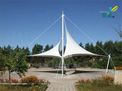 景觀膜結構工程能提供豐富多彩的用處,并與園林景觀溶為一體。發明出讓人們縱情享用的高興空間。充沛展現了構造構件明晰受力的藝術之美,它巧妙的整合四周的環境,景觀膜給人們一種高貴典雅、浪漫溫馨之感。另外由于膜資料自身特有的顯色性,景觀膜在夜間彩燈的映射下能構成絢麗絢麗的景觀。不只為人們提供遮陽避雨的空間。同時,更由于這種生動活潑的外型能給人們帶來時髦、輕松的休閑感受,所以廣受歡迎。