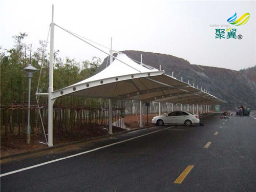 膜結構車棚分析理論和設計施工經驗的不斷成熟和完善,膜結構已從眾多的現代建筑形式中異軍突起,越發地受到人們的青睞,吸引著眾多的建筑、結構工程師們來設計建造現代大中小型永久性或半永久性的膜結構建筑。同時也對膜材料的物理性能提出了更多的要求。