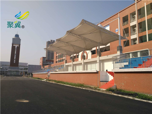體育場看臺雨棚的遮擋效率及安全一直是人們很看重的,膜結構看臺應要保障安全,骨架結構的間距,間距不能過大否則會影響其承受力。膜結構看臺具有以下性能優點,因此深受人們的青睞: