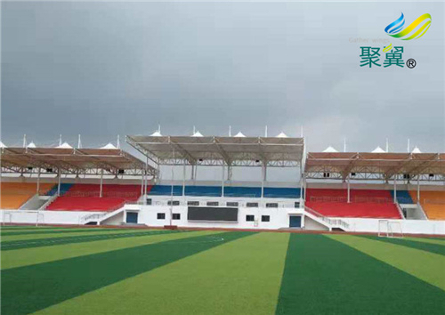 膜結構看臺也叫膜結構看臺遮陽棚、罩棚、雨棚,主要是在看臺上方加上一個膜結構制作的遮蔽結構,可以起到遮陽避雨的功能。膜結構看臺有很多的使用優勢,但是膜結構看臺在施工的的時候有很多注意事項,比如膜面張拉,那么膜結構看臺膜面張拉的注意事項有哪些呢?