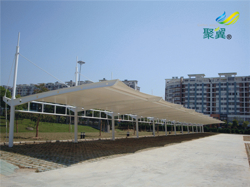旅游景區:現在的旅游景區能夠吸引游客的途徑主要有代表景點、特色美食和怡人環境。除了特色美食之外,膜結構景觀可以融合景點和環境的建設,熟悉膜結構的朋友都知道,膜結構的特點非常鮮明,其外觀既張揚又含蓄,既剛強又柔美,既突出又幽靜。作為景點讓人賞心悅目的是其美麗的外觀,作為休息場所令人流連忘返的是它的別具一格。目前現在很多旅游景點都建有各種各樣的景觀膜結構,比如膜結構雨棚,膜結構遮陽棚,膜結構休息亭,膜結構觀景臺等等,甚至有的旅游景點為了方便游客的停車,也配置了