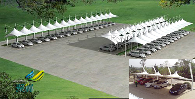 膜結構停車棚找形問題。所謂的膜結構車棚找形問題就是對它的基本形狀進行確定的過程。因為建筑結構類型不同的話一般膜結構停車棚的建筑形態也會有所差異。找形的過程需要設計人員結合膜結構停車棚本身的特點以及建筑周圍的環境進行。