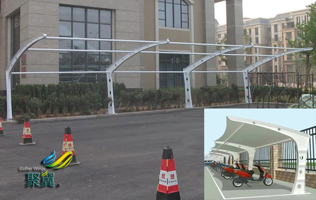 膜結構停車棚和自行車停車棚都屬是車棚,也同樣都是用膜材料產品來制作的,但是他們兩個從名稱和用途上來講是兩個完全不一樣的東西。
