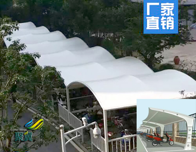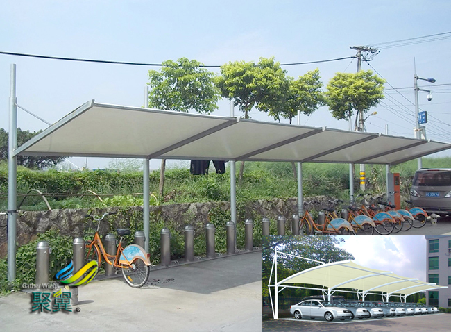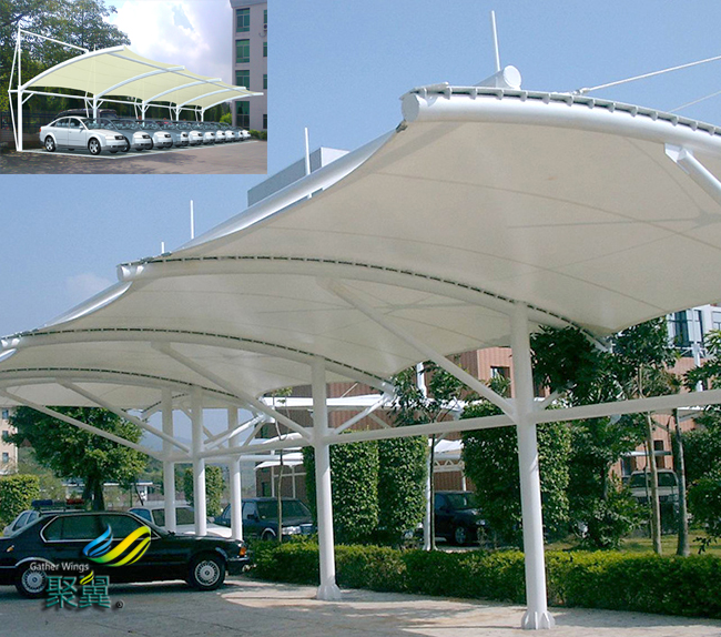 膜結構車棚在國外已逐漸應用于體育建筑、商場、展覽中心、交通服務設施等大跨度建筑中。膜結構車棚已成為結構設計選型中的一個主要方案。成為化纖紡織品應用的一個重要領域。