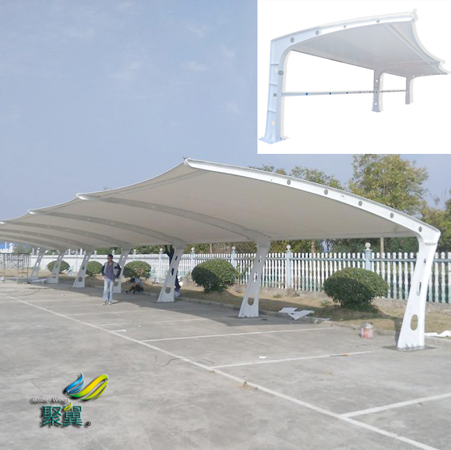 膜結構車棚主要起到擋風遮雨的功能,再者膜結構車棚也是一件難得藝術品,膜結構車棚具有遮陽、擋雨、實用、美觀的作用,給人美的視覺享受,膜結構車棚柔美,其曲線,其剛柔并濟,膜結構車棚豐富造型,其潔白無瑕,讓人眼前一亮,回味悠長,這也是為何能發展如此迅猛的緣由。