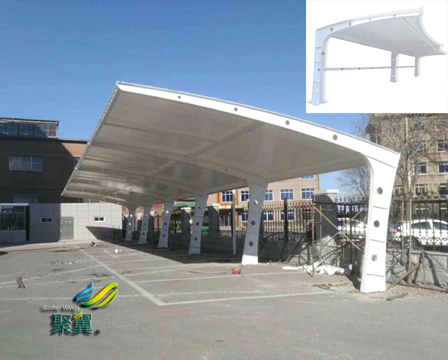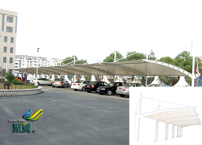 ①.膜結構車棚沒有眩光;因為照進膜結構車棚內的光都是漫射光,基本不會涌現眩光。但是也要考慮到玻璃采光區的組合遮陽以防止直射光造成的眩光。