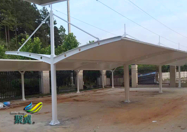 膜結(jié)構(gòu)車棚建筑采所用膜材是環(huán)保的,外層膜可以制作環(huán)保袋,不僅膜結(jié)構(gòu)車棚表面材料能回收利用,膜結(jié)構(gòu)建筑本身也可以靈活拆分,從而實現(xiàn)回收再利用,膜結(jié)構(gòu)車棚膜材本身還具有良好的透光性,膜結(jié)構(gòu)車棚建筑空間白天可以得到自然的漫射光,從而節(jié)約大量用于照明的能源,膜結(jié)構(gòu)車棚應(yīng)用大大推動著環(huán)保行來的發(fā)展。