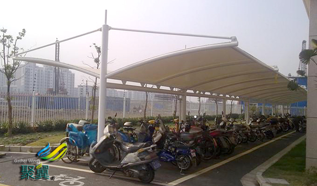 膜結構車棚選擇是哪種結構形式,他們的頂部所用的材質都相處無幾,一般多用一些高強薄膜材料,因為這種膜結構車棚材料最大的特點就是強度高、耐久性好、防火難燃、自潔性好,不受紫外線影響,使用壽命長。