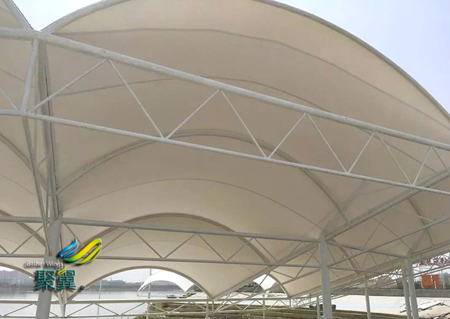 膜結構車棚藝術性充分展示了建筑師的想象力,體現了建筑構件的美感.膜結構車棚節約能源,節約能源,節約能源,節約能源. 膜結構車棚防火性能,廣泛使用的膜材料,能很好地滿足防火要求,具有優異的阻燃性和耐高溫性能,達到法國、德國、美國、日本等國家標準.