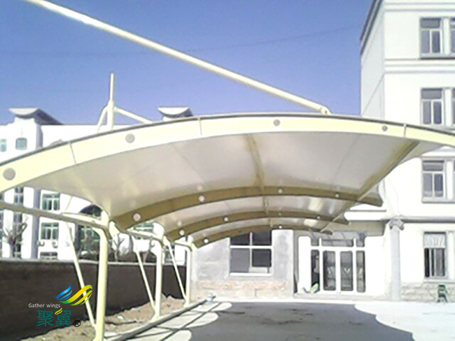 膜結構車棚典雅,富有時代氣息,膜結構車棚是打破傳統的修建構造,膜結構車棚外型十分美麗、典雅、天然等,在方式上是能夠充分的發揮膜結構車棚修建師的想象力。