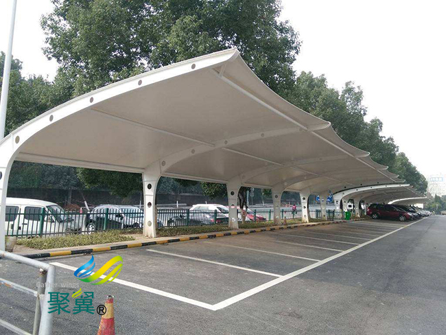 膜結構車棚是一種公用建筑物,這種產品的首要要求就是耐用穩固,膜結構車棚都是鋼構支撐柱,然后其上進行焊接等工藝加裝膜材料頂棚。如果是采用的聚碳酸酯材料作為頂棚的話,采用螺栓固定。