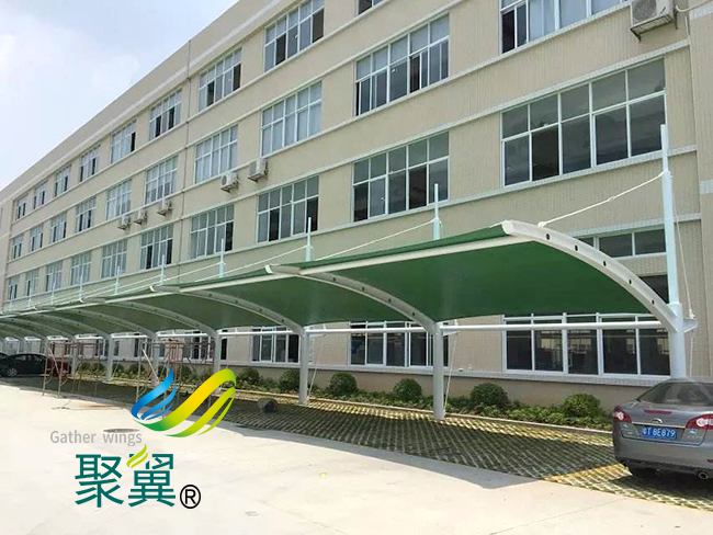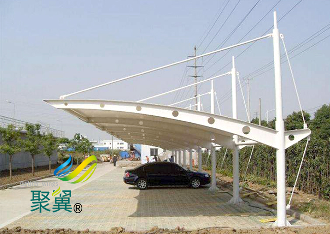 膜結構車棚的經濟效益較好指出膜結構車棚修建屋面分量僅為慣例鋼屋面的三十分之一而這就降低了墻體和根底的造價。