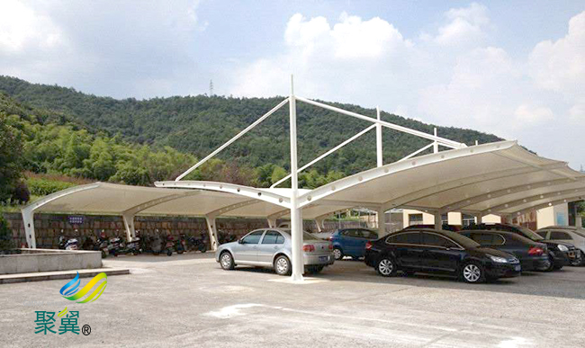 膜結構車棚高斯曲面,即沿對角方向分別形成“高點”和“低點”。膜結構車棚“高點”通常是由桅桿來提供的,也許是由于這個原因,有些文獻上也把膜結構車棚車棚叫做懸掛膜結構車棚淺析購物建筑路線的優劣。
