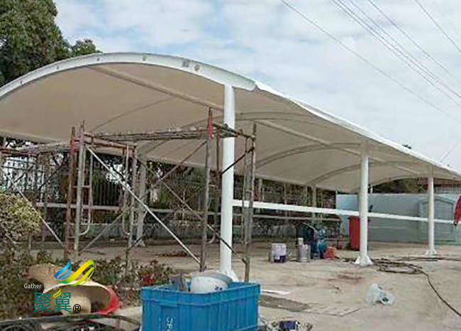 膜結構車棚內部采用直徑為38鍍鋅圓管與車棚框架焊接,膜結構車棚安裝加強棚頂部強度。