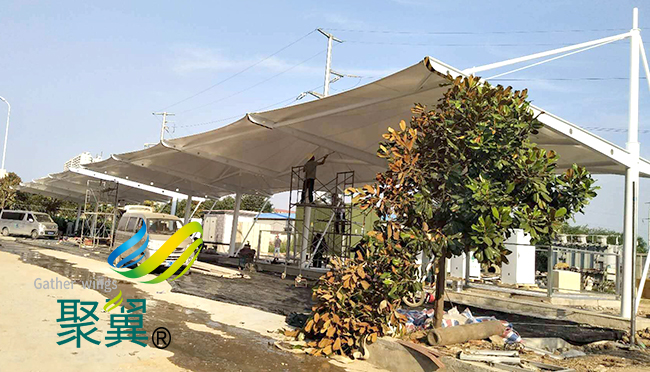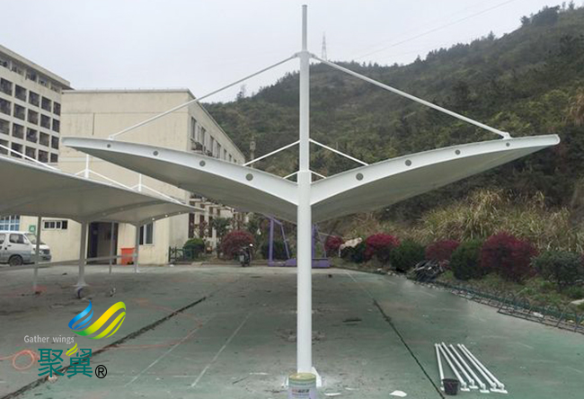 在完工后的維護工作也是相當重要的,膜面上污垢的堆積與當?shù)氐沫h(huán)境條件、膜結構車棚膜材特性和膜面的形狀有關。從技術的角度看,膜結構車棚不需要清洗。