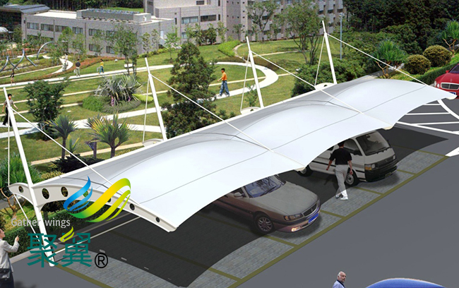 現在的膜結構車棚雨棚主要的有玻璃類的雨棚還有就是膜結構的雨棚,這兩種都有所使用。