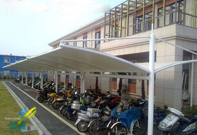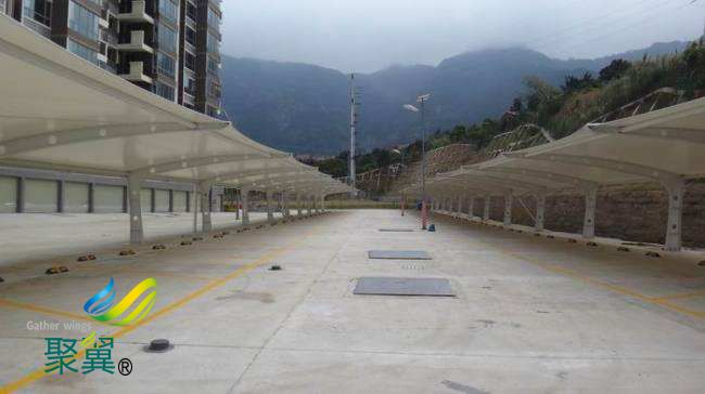 膜結(jié)構(gòu)車棚具有良好的防震性能。由于其整體結(jié)構(gòu)輕巧,即使在發(fā)生地震時(shí),膜結(jié)構(gòu)車棚建筑也不會(huì)造成過大的危害力,這也是防震性較好原因之一。