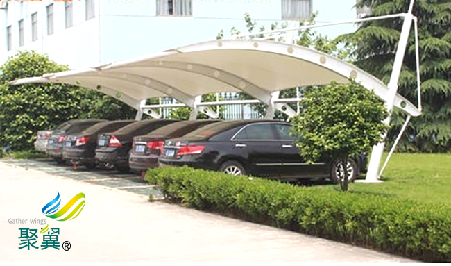 膜結構車棚高科技新型資料的膜結構車棚首要應用于大型的體育館、劇院、博物館等大型的展覽館,在外形上比較新穎,膜結構車棚漂亮程度能抵達一定的作用。