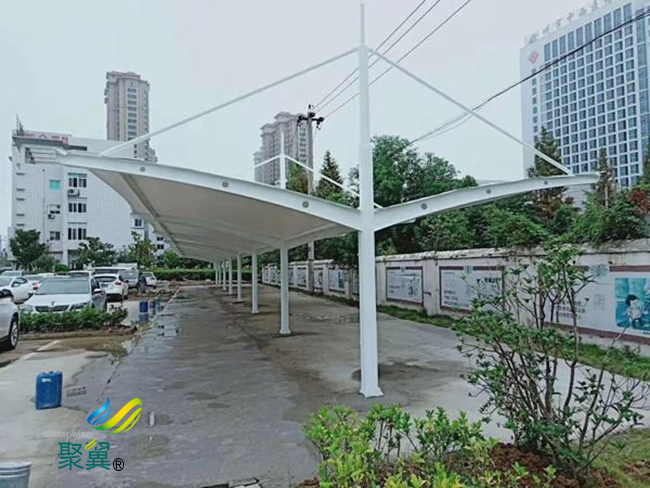 膜結構車棚即為織物結構,是近幾十年來發展起來的一種新型大跨度空間結構形式,*早的膜結構車棚出行可追溯到帳篷結構。膜結構車棚是集建筑、結構、材料和計算機等科學為一體的高科技工程。