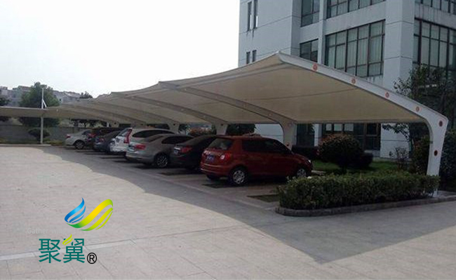膜結構車棚是提供給車輛停泊的地方,使車輛避免了風吹雨打。來保護自行車,汽車等不受損傷。在膜結構車棚未出現之前,市場主要的是鐵制車棚,鋁合金車棚,彩鋼車棚等。這些車棚都是采用金屬構件來制作,因此具有笨重,形式單調的缺點,沒有個性和美觀。