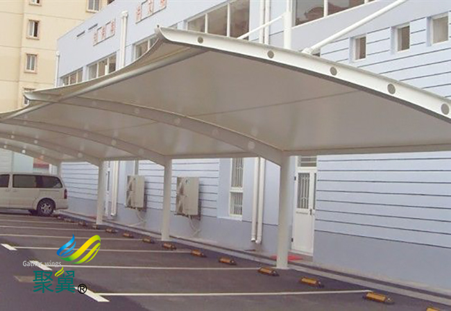 膜結構車棚具有極好的透光效果,透光率可達30%,而其他類型的產品一般來說透光率可以說是極差的存在,致使車棚會因為長期暴曬二變黃損害,而膜結構車棚透光率就確保了不會出現這樣的問題,從側面可以看出膜結構車棚膜構造的車棚使用的壽命要更加的長久。