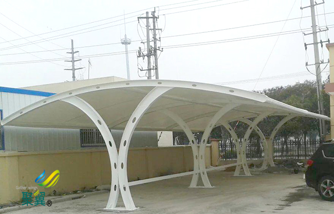 目前市場上有很多膜結構車棚,這些膜結構車棚大致也分為鋼構造和膜構造停車棚。不同材質的溫州停車棚的性能也不同。