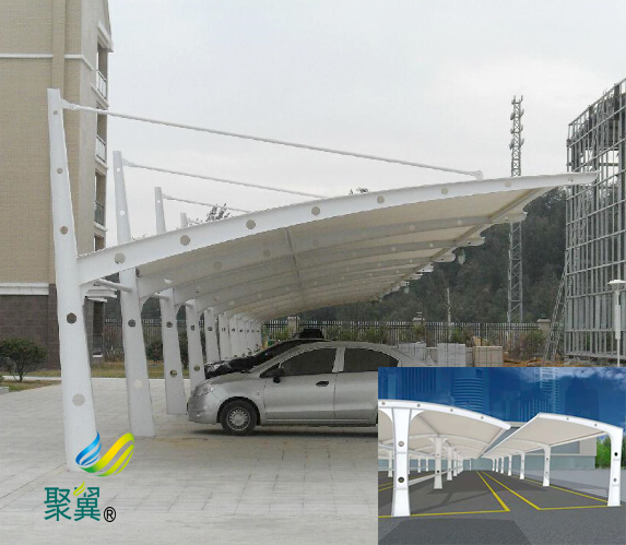 膜結構車棚得到廣泛應用的一個重要原因就是因為膜結構車棚環保的性能能夠符合國家相關標準。尤其是作為公共設施進行使用時,膜結構車棚往往象征著一座城市的文化,有的城市還會把設計特別的膜結構車棚作為標志性建筑。