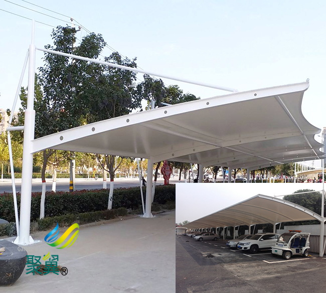膜結構車棚,因為自重輕,膜結構車棚膜建筑可以不必要內部支持面大跨度覆蓋空間,這使人們可以列天真、更有創意地設計和使用建筑空間。