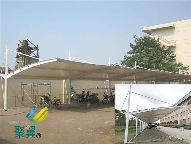 膜結(jié)構(gòu)車棚造型簡潔有力|車棚防水性好