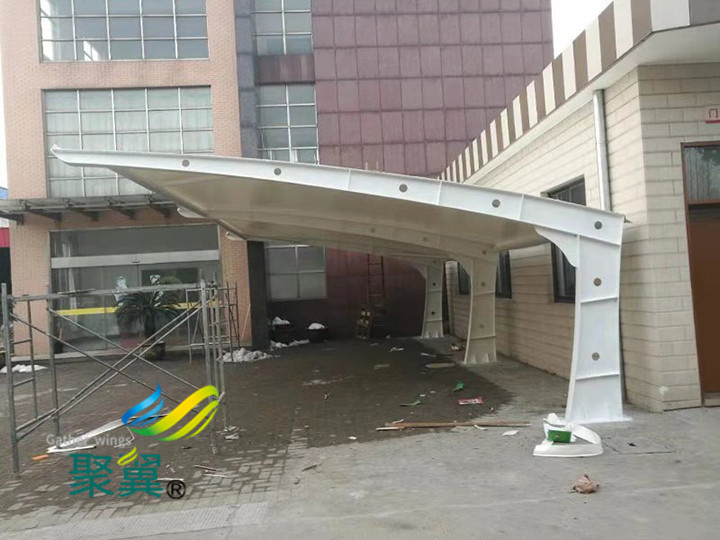膜結構車棚的優點已經越來越受到人們的認可,膜結構由于所用的材質輕、韌性好,所以可以讓車棚的設計跳脫出傳統彩鋼瓦、陽光板車棚的單調造型,給設計師更大的施展創意的空間,使得車棚不僅安全實用還能具有一點點藝術氣息。