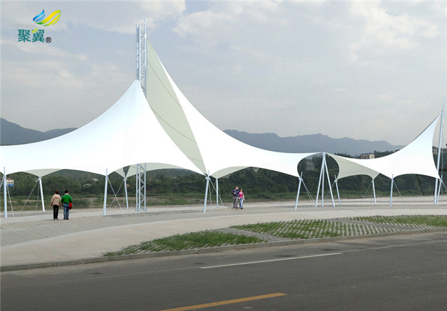 北京張拉膜結構可使建筑師設計出各種張力自平衡、復雜且生動的空間形式。在一天內隨著光線的變化,雕塑般的膜結構通過光與影而呈現出不同的形態。日出和日落時,低入射角度的光線將突現屋頂的曲率和浮雕效果,太陽位于遠地點時,膜結構的流線型邊界在地面上投入彎彎曲曲的影子。利用膜材的透光性和反射性,經過設計的人工燈光也可使膜結構成為光的雕塑。按照現有的各國規范和指南設計的輕型張拉膜結構具有足夠的安全性。輕型結構在地震等水平荷載作用下能保持很好的穩定性。