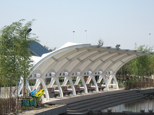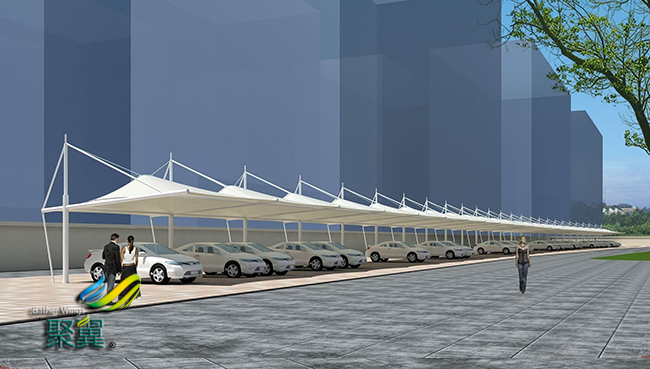 根據(jù)這個(gè)現(xiàn)狀研發(fā)出了新型的膜結(jié)構(gòu)車棚產(chǎn)品,在滿足外觀美觀的條件下,也能保證膜結(jié)構(gòu)車棚抗老化,抗黃變,抗化學(xué)品,耐腐蝕,能抵御12級(jí)強(qiáng)臺(tái)風(fēng)的沖擊,能99%過濾紫外線,設(shè)計(jì)使用壽命長(zhǎng)達(dá)20年以上。