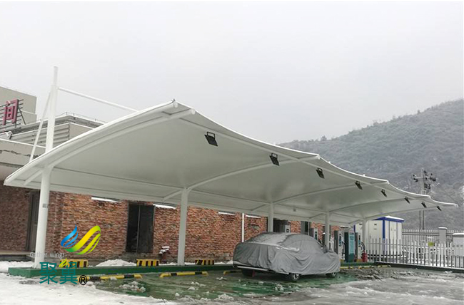 膜結構車棚如何在環保行業應用,說到膜結構可能很多朋友見到最多的就是膜結構車棚。