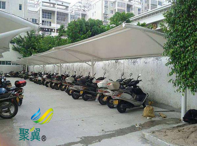 膜結構車棚藝術性:膜結構車棚由于其材料的特殊,拉伸和延展性很強,可以塑造出很多具有現代化和藝術性的建筑,將膜結構車棚自行車棚搭配組合,便成了一件藝術品,給人美的視覺享受,膜結構車棚豐富的新穎造型,潔白無瑕,讓人眼前一亮,回味悠長。