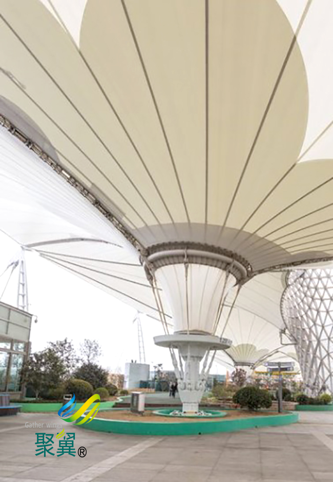 張拉索膜結(jié)構(gòu)藝術(shù)性:除了一般?雨蓬不可比擬的實用、耐用、遮風(fēng)擋雨的功能外,張拉索膜結(jié)構(gòu)雨蓬更是一座雕塑,一件藝術(shù)品,給人美的視覺享受。張拉索膜結(jié)構(gòu)柔美,其曲線,其剛?cè)岵?jì),其豐富造型,其潔白無瑕,讓人眼前一亮,回味悠長。
