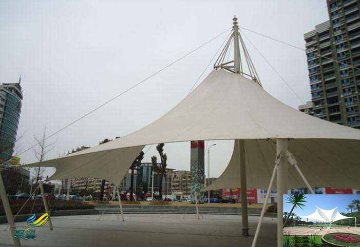 5、 安全性:按照現(xiàn)有的各國規(guī)范和指南設(shè)計的的輕型張拉膜結(jié)構(gòu)具有足夠的安全性。輕型景觀張拉膜造型結(jié)構(gòu)在地震等水平荷載作用下能保持很好的穩(wěn)定性。
