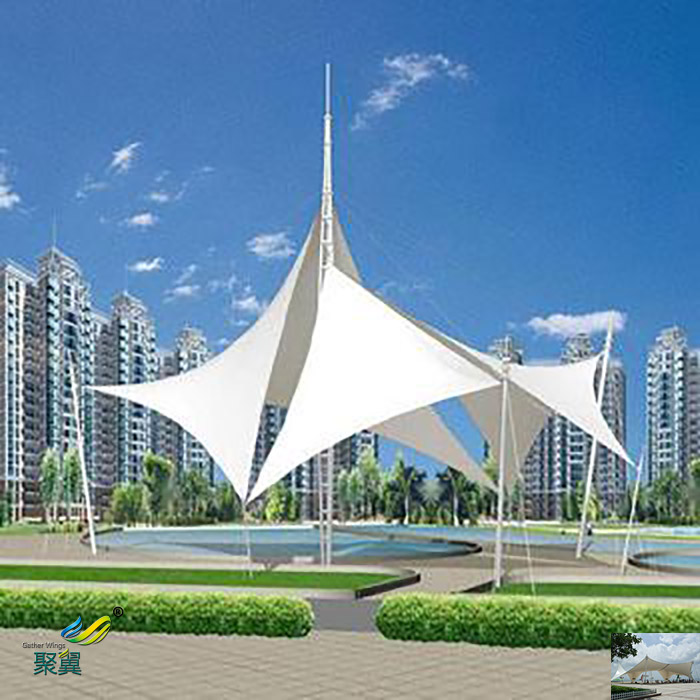 景觀張拉膜結(jié)構(gòu)它是用高強度柔性薄膜材料與支撐體系相結(jié)合形成具有一定剛度的穩(wěn)定曲面,能承受一定外荷載的空間結(jié)構(gòu)形式,給人一種古老而又現(xiàn)代的美感! 在膜結(jié)構(gòu)的發(fā)展中,因為其主要應用于機場、體育館、停車場、景觀等場所,根據(jù)制作材料的不同,在這些地方使用膜結(jié)構(gòu)的時候,根據(jù)不同的地點膜結(jié)構(gòu)都有屬于自己的優(yōu)勢,為了區(qū)分方便,大家才直接把應用于景點的膜結(jié)構(gòu)材料叫做景觀膜結(jié)構(gòu)。景觀膜結(jié)構(gòu)的特點:景觀膜結(jié)構(gòu)以造型學,色彩為依托,可結(jié)合自然條件及民族風情,享受大自然般浪漫空間。